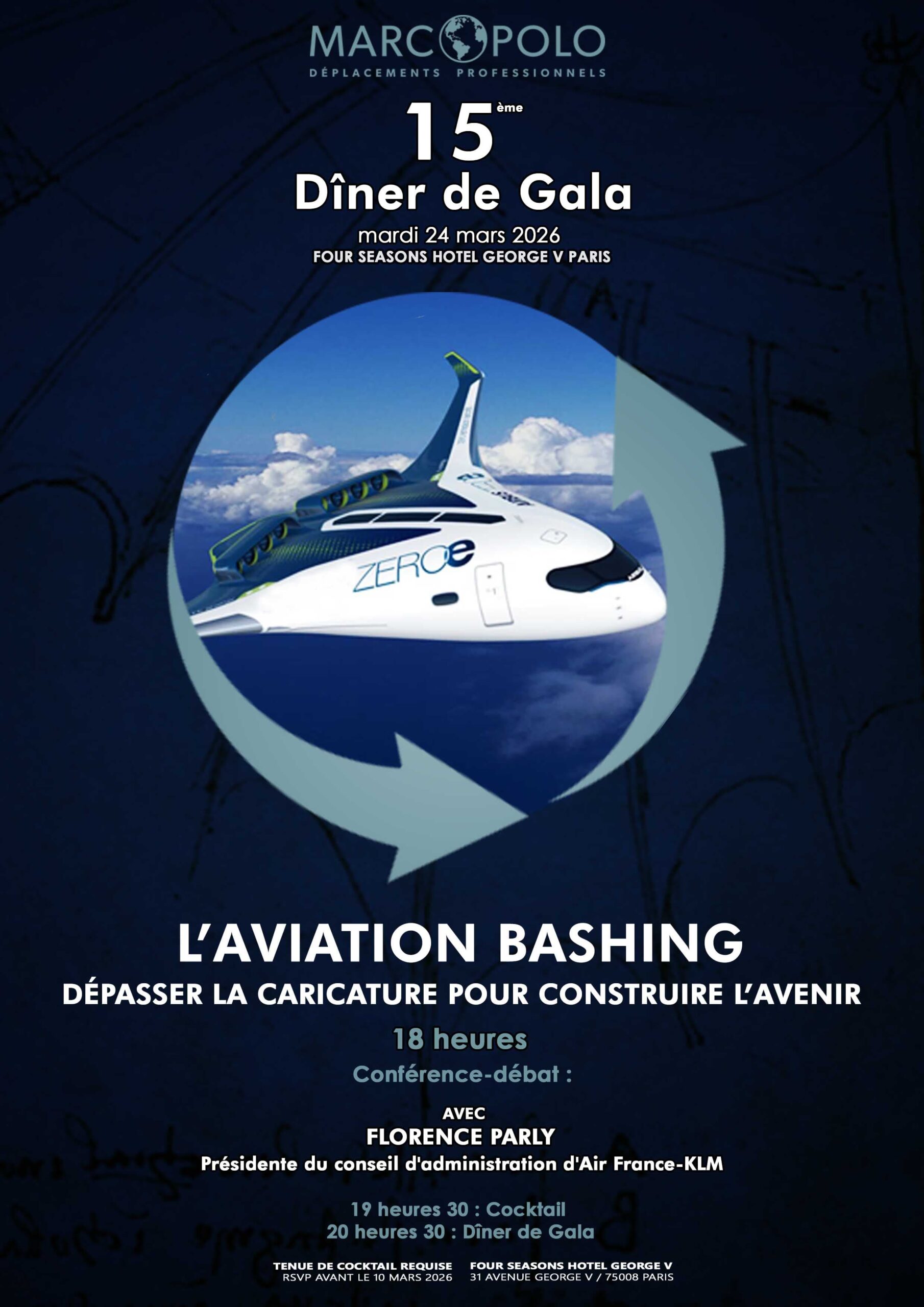 Un 15 ème diner de gala de Marco Polo conduit avec brio. Une conférence qui a connue un immense succès du fait de la présence de Madame Florence Parly, Présidente du Conseil d’administration d Air France, invitée d’honneur cette année. Le titre de la conférence : « l’aviation bashing, dépasser la caricature pour construire l avenir ». Cette quinzième édition a réuni aussi les principaux dirigeants des compagnies aériennes, et les invités étaient aussi au rendez vous.